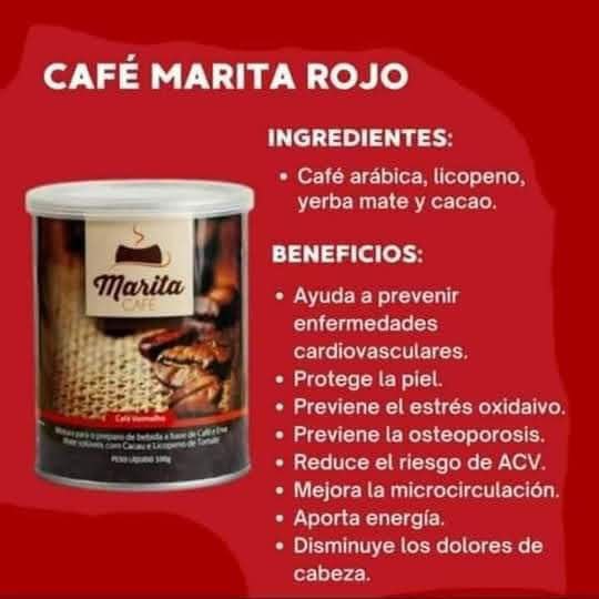 Café Marita Rojo es una mezcla exclusiva que une el sabor del café gourmet con el poder de extractos naturales seleccionados para apoyar el control de peso, mejorar la digestión y aumentar la vitalidad.